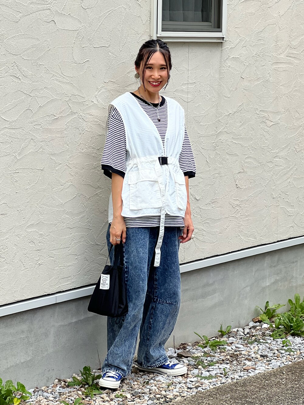 めっちゃ着てるベスト🦺 ボーダー合わせでゆるだぼっとコーデ///
