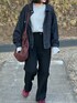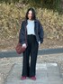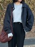 あみぃのデニムジャケット「【新色追加】 ビッグシルエット ヴィンテージライク ケミカルウォッシュ加工 グラデーション デニムブルゾン / Gジャン デニムジャケット / ダブルポケット デニムブルゾン」を使ったコーディネート