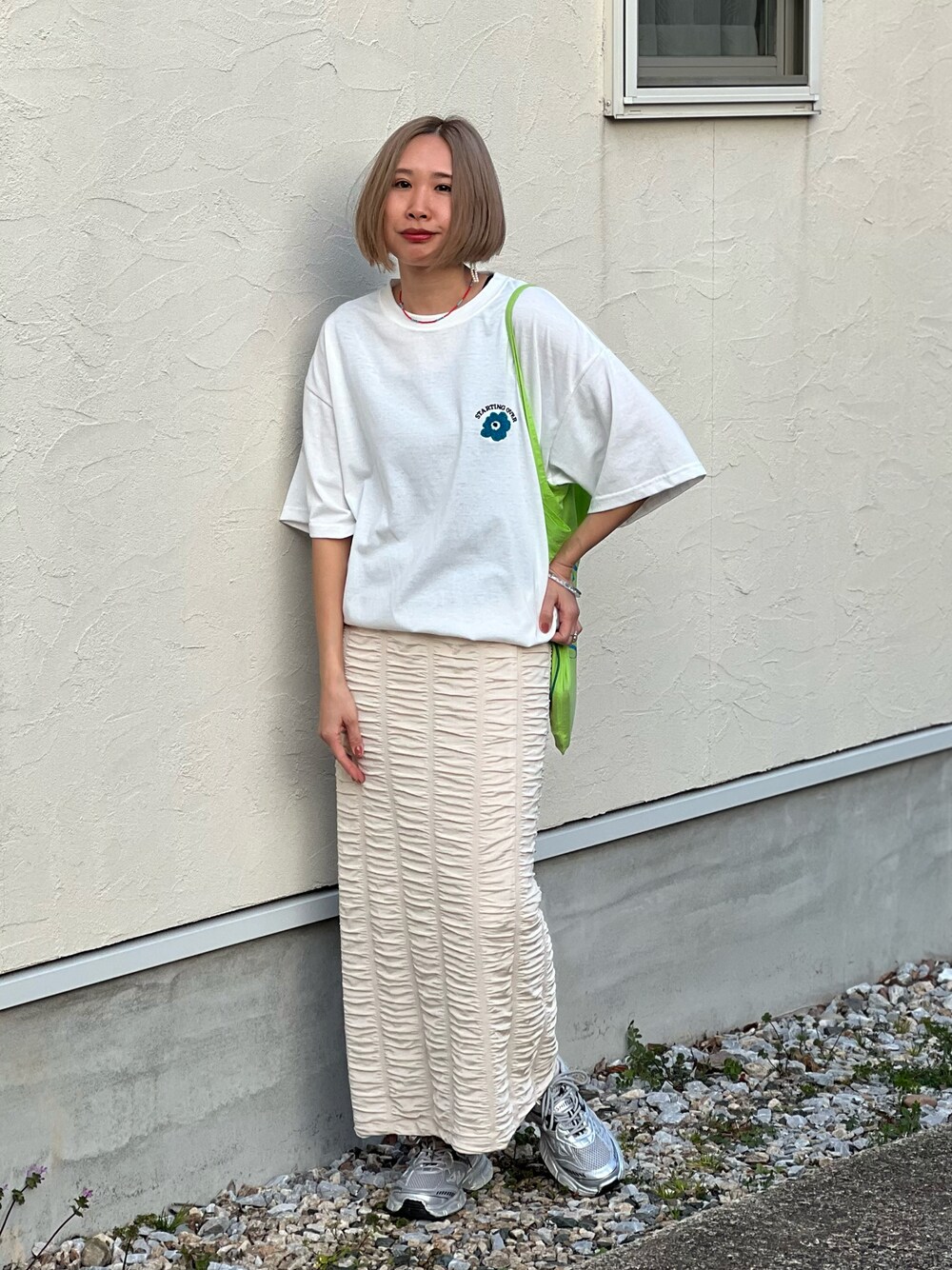 あみぃのTシャツ/カットソー「【Starting Over/スターティングオーバー】ONE POINT LOGO EMBROIDERY DRAW CODE T-SHIRT / ワンポイント ロゴ刺繍 ドローコード デザイン 半袖 Tシャツ」を使ったコーディネート