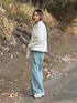 あみぃのスウェット「ハーフジップ配色ドロスト裏起毛アノラックトップス」を使ったコーディネート