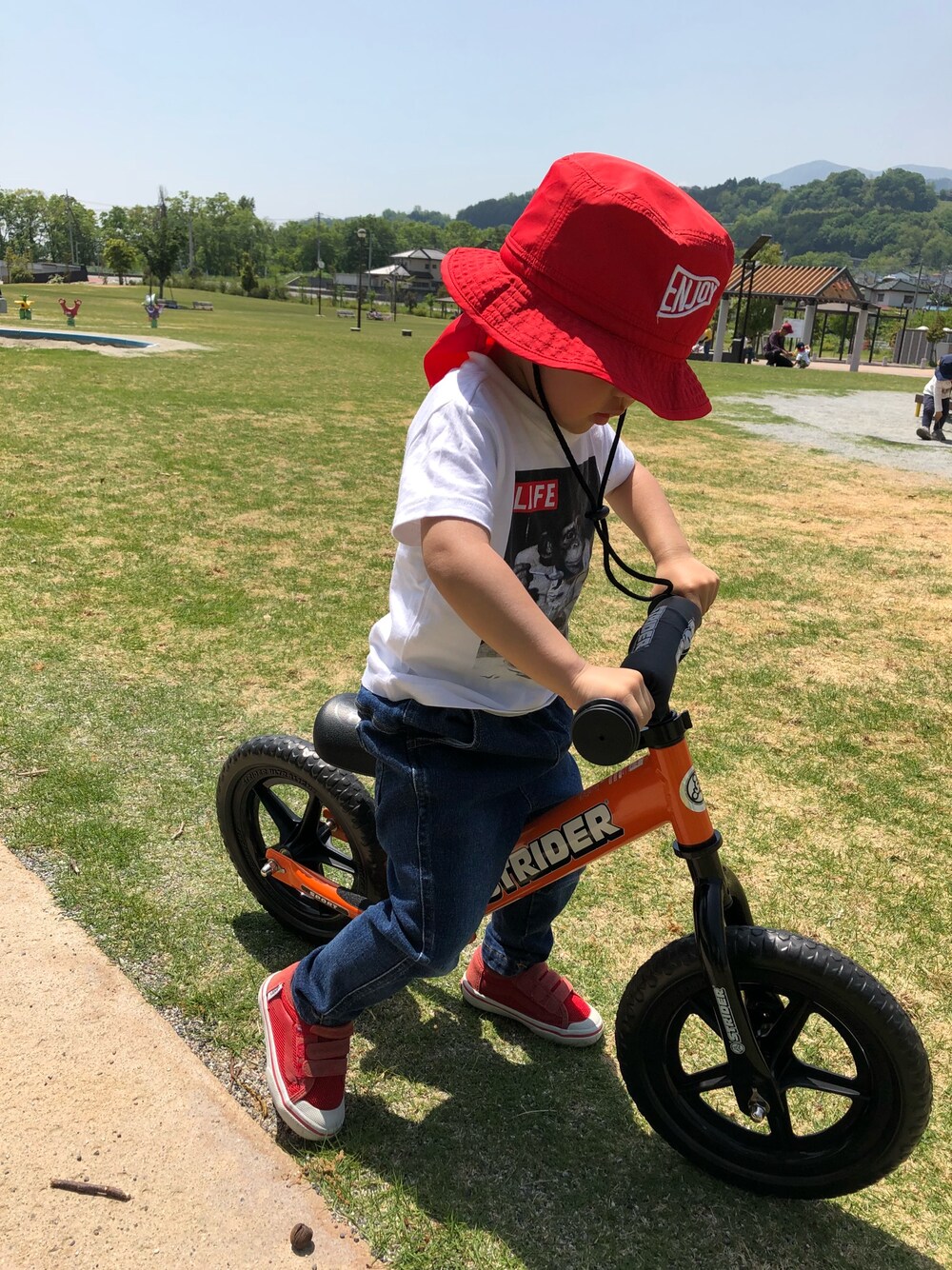 ストライダー センスがないみたいです(≖_≖ ) またがってるだけ(´・з・`) 進まなーい( ꒪Д꒪) 息子よ頑張れ…頑張るのだ。 公園ゎとりあえず 楽チンに¨̮ 首までガードしてくれる スグレモノ帽子★☆