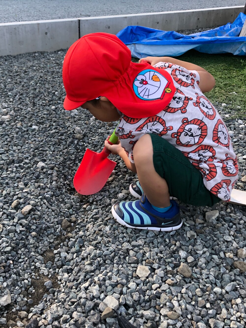 保育園から帰ってきても まだお外が明るいこの時期。。 遊び足りないのか?! お庭の砂場に一直線( ˙◊˙ ) そのうち 庭の砂利で川を作るのが日課になりました( ゚∀ ゚)💦 まんま 保育園コーデで失礼してます¨̮ )/ 自分で 保育園のお着替えBOXから選んできたコーデ☆