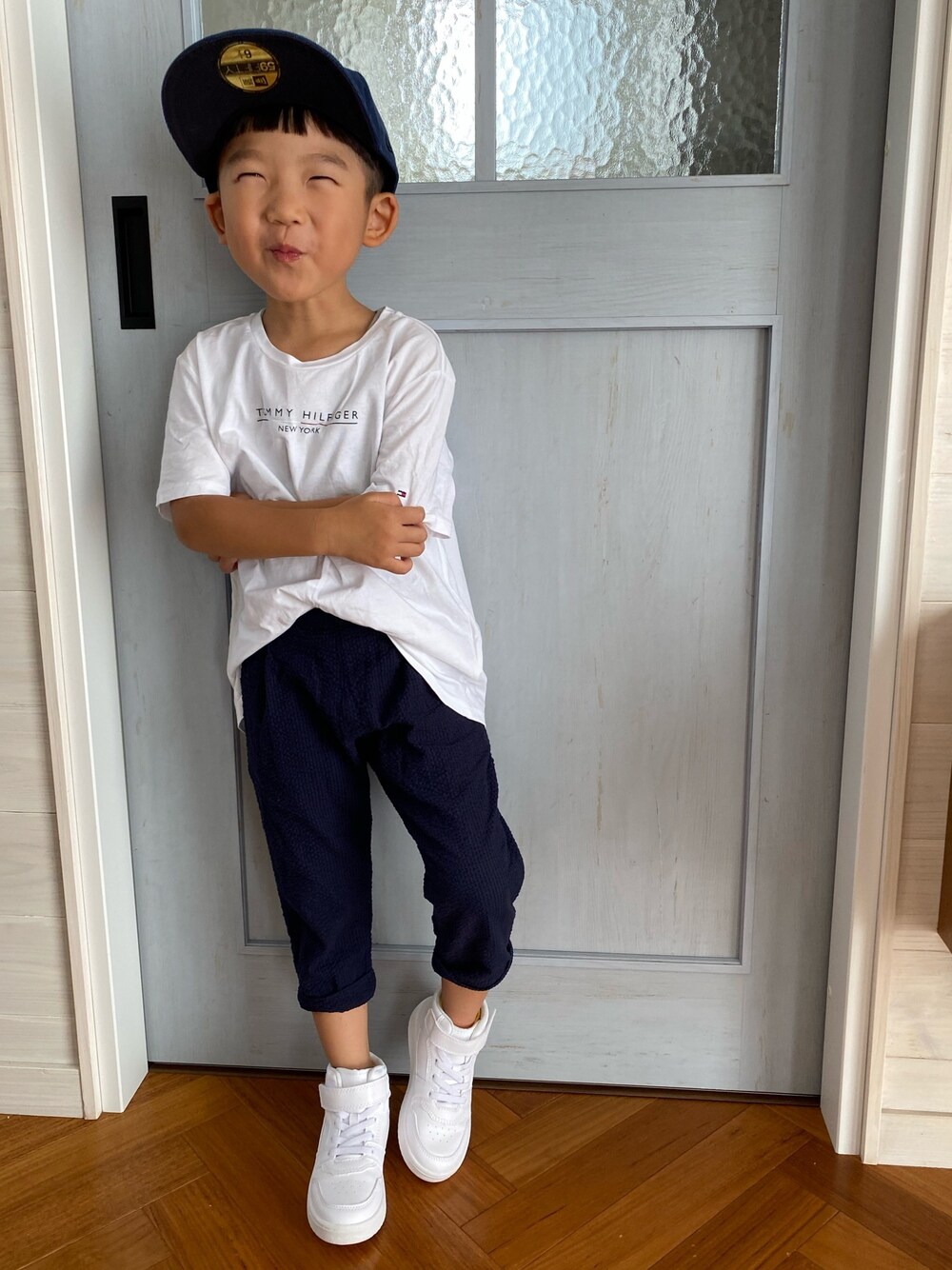#白スニーカー #キャップ #白Tシャツ こんなに暑いと ほんとになんにもやる気がなくなる(=_=)💦 白×ネイビーで 涼しげに~ 見た目だけでもww 本人お気に入りの白スニーカーで コーデを組んでみました♩ Tシャツはアウトレットでゲットしました✩.
