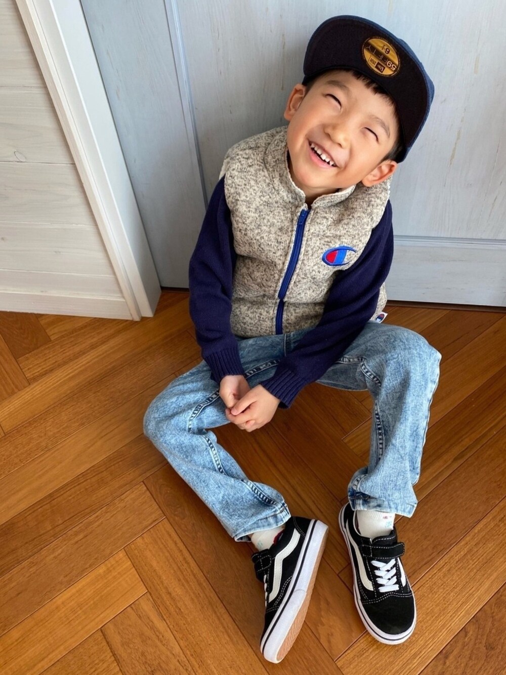 お下がりのベスト(・∇・)♡ 130だけど ちょうどよく着れたˊᵕˋ♥ GUのパンツ♩ おニューアイテム( ˙◊˙ ) ストレッチ素材だから保育園にいいかな?と思って購入してきました🌼