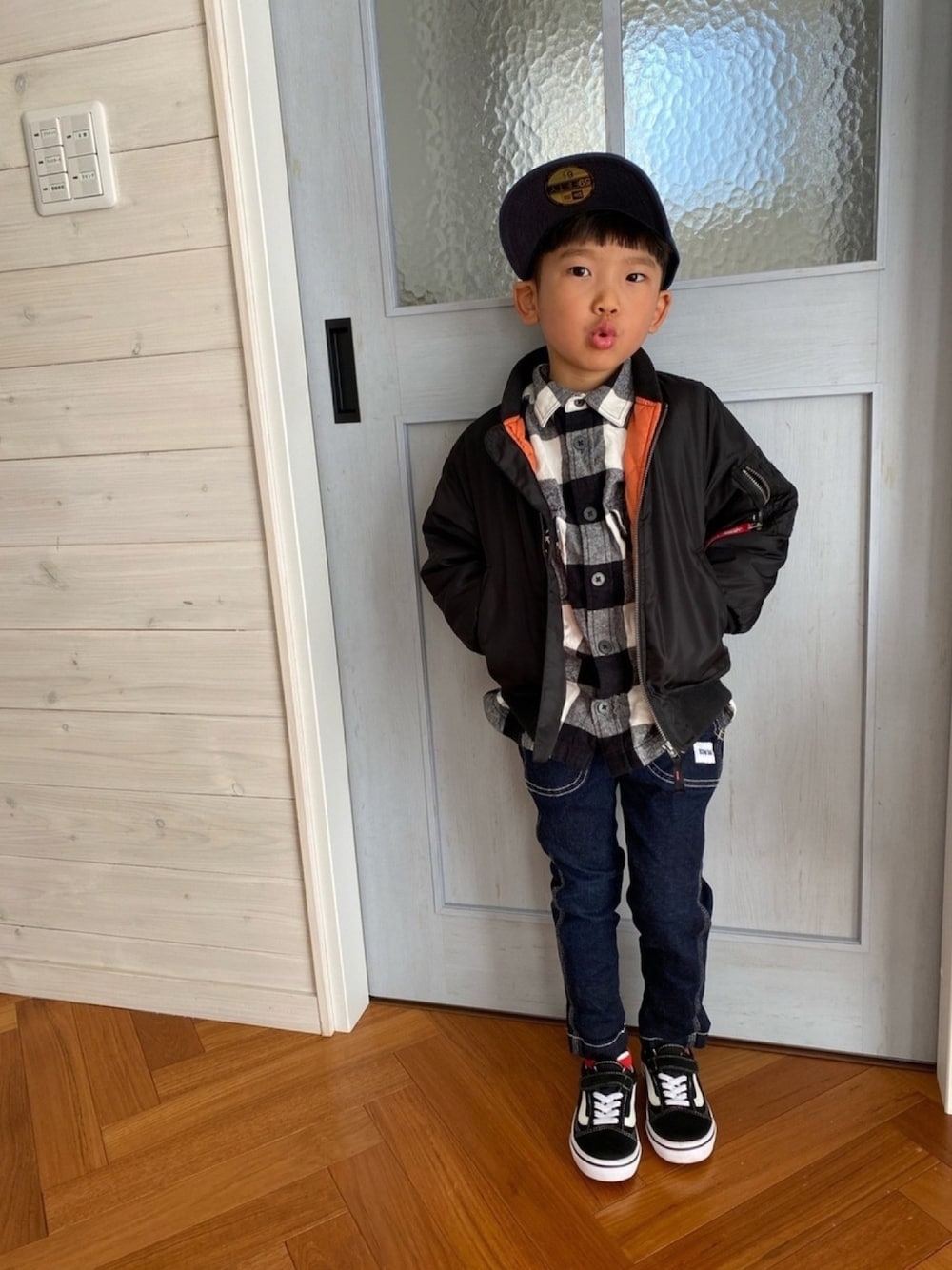 #ストリート このデニム ずっと折ってて履いてたけど 折らなくても履けるようになってて 成長を感じた1枚(o´Д`)✧︎ オルスクが可愛すぎる件(*´³`*)💕