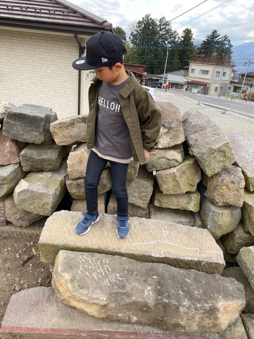 久々にぃに( .. )✩ 西松屋のロンティ( ¨̮ )❤ くすみカラーがお気に入り(^^)!! 岩の上から 失礼してます(๑ ́ᄇ`๑)