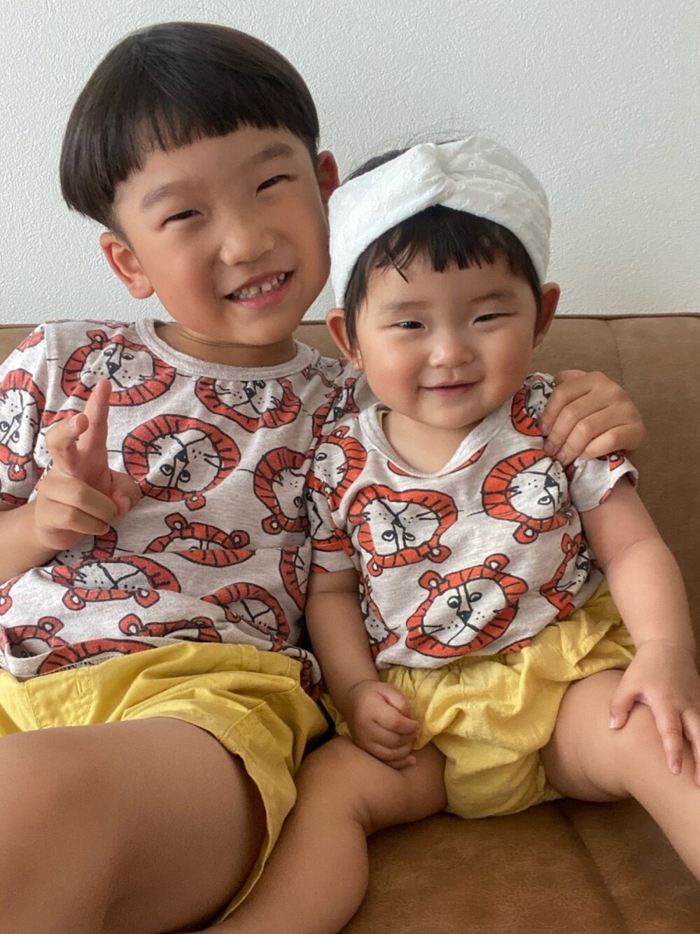 プチプラ兄妹🦁 懐かしのライオンT🦁 黄色のパンツでリンクしました( ˙◊˙ )⭐️ トップスsize 兄者…110 お嬢…80