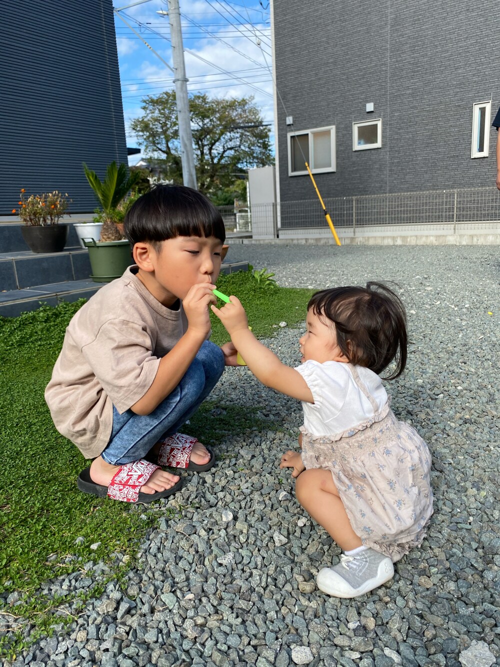 昨日の夕方 シャボン玉しました(๑º³º)y━・o○ 兄者が必死で吹いてるのに それを邪魔するお嬢w 全然シャボン玉が出てこないw お休みの日は色でリンクすることが多いです(♡˙ᵕ˙♡) 昨日は ベージュでなんとなーくカラーリンクしました♬。.