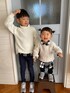 今日は 白ニット×黒白チェックシャツ×デニム ◼️◻️◼️◻️ ニューバランスのスニーカーで リンクしました( ・∇・)✧︎ 夕方からどんど焼きに参加します¨̮ )/ あったかくして行こうね"(ノ*>∀<)ノ 全身バージョン お嬢単品は 次のページへ❤