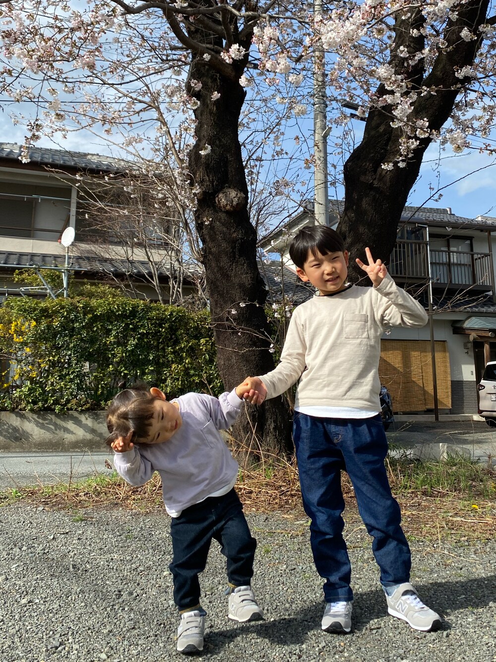お家の前の桜が 急に咲きました🌸 気温がぐーーーんと上がったからかな🤔♡ 入学式まで 桜 もつかなーー!🙂💦 トップス 色違いアイテム♡
