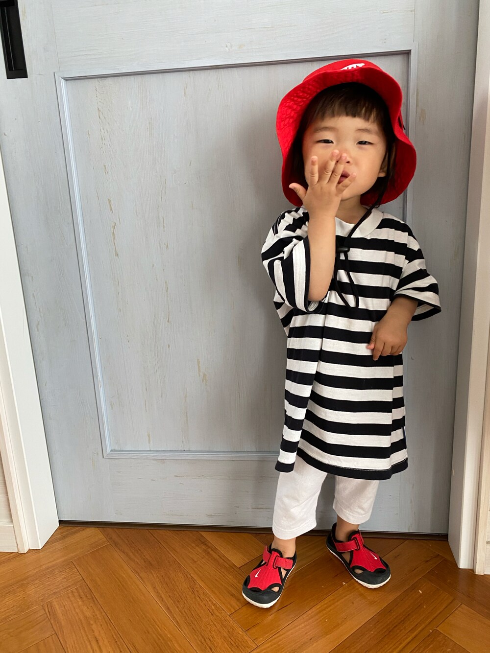 嘘だろ(⊙ꇴ⊙) 全て兄者のお下がりでコーデ完成ぢゃん!!😇 パディントンみたいなバケハ 懐かしいー♥️と思ってかぶせたけど サイズまだデカすぎたw あと半年くらいすれば50のサイズが 被せられるかな(ㅅ˙³˙)♡ 午後から 1歳半検診行ってきます( •̀֊•́ ) ̖́- ドキドキ♡♡