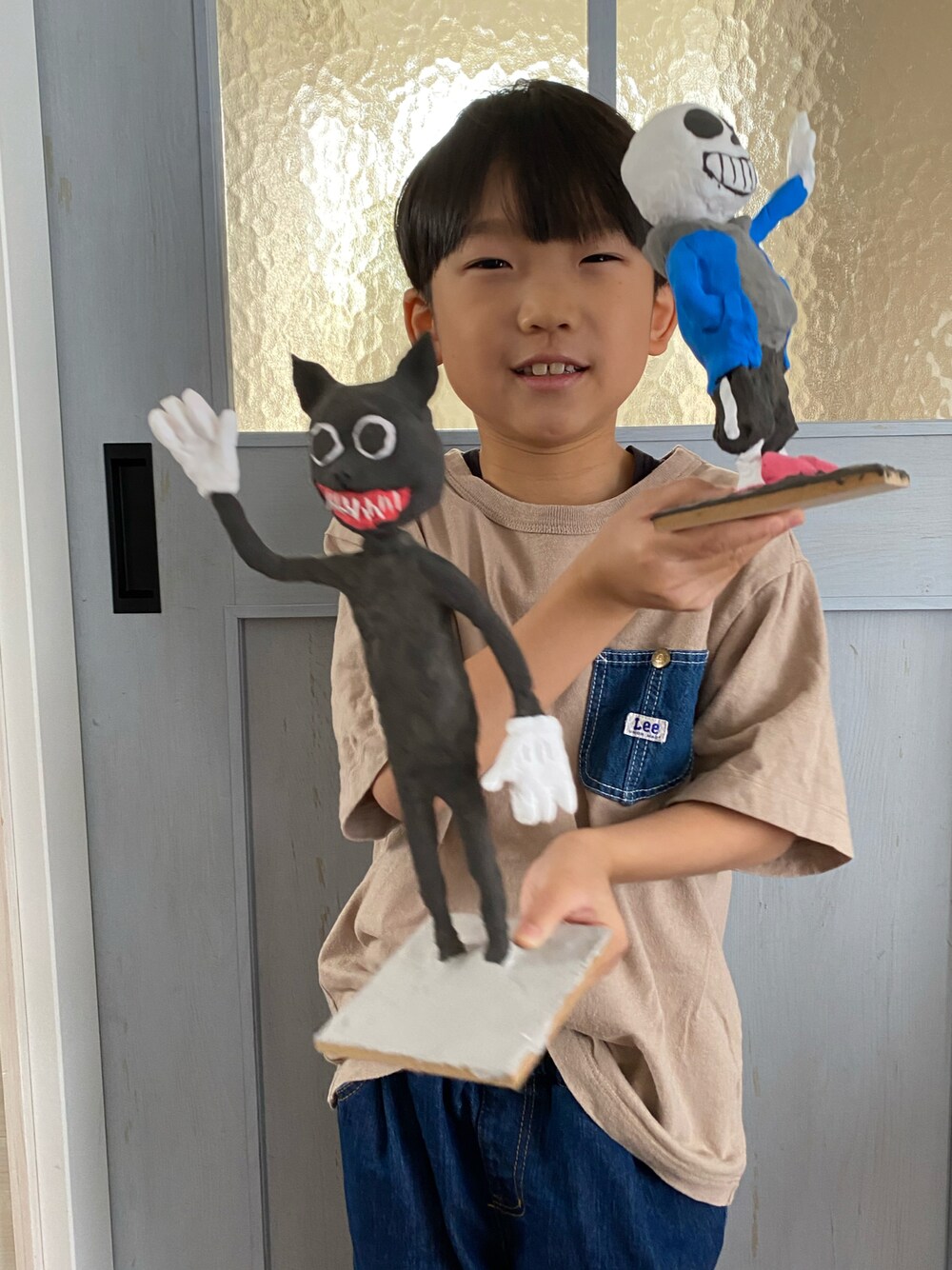 小学生登校コーデ🎒 LeeのTシャツに 西松屋デニム𓂃 𓈒𓏸◌ そして今日は 紙粘土の新作たちをご紹介w 以前にも作った カートゥーンキャットと アンダーテールのサンズ 今度はひと回り大きくサイズアップして パパと作ってました(*´ ³ `)ノ 見せ方の癖😇 2枚目は朝顔を庭でも育てると意気込んで 毎朝のお水やり風景( *ˊᵕˋ)ノ 芽が出たらいいね🌱