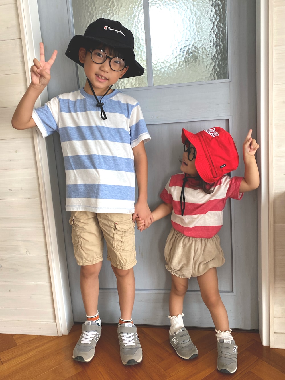 #ボーダー 西松屋で去年買ったTシャツ💙❤️ 太ボーダーだから 目立つw ベージュパンツと ニューバランススニーカー バケハでリンクしました(*^^*)♡ お嬢 ピースのつもりがビズリーチ☝️ 兄者のクワガタとカブトムシのお世話に お嬢も興味津々!! ゼリーをあげたり 霧吹きで雨を降らせてあげたり… お世話を頑張っててエラい👏 この夏 命についてしっかり学んでほしいな😍