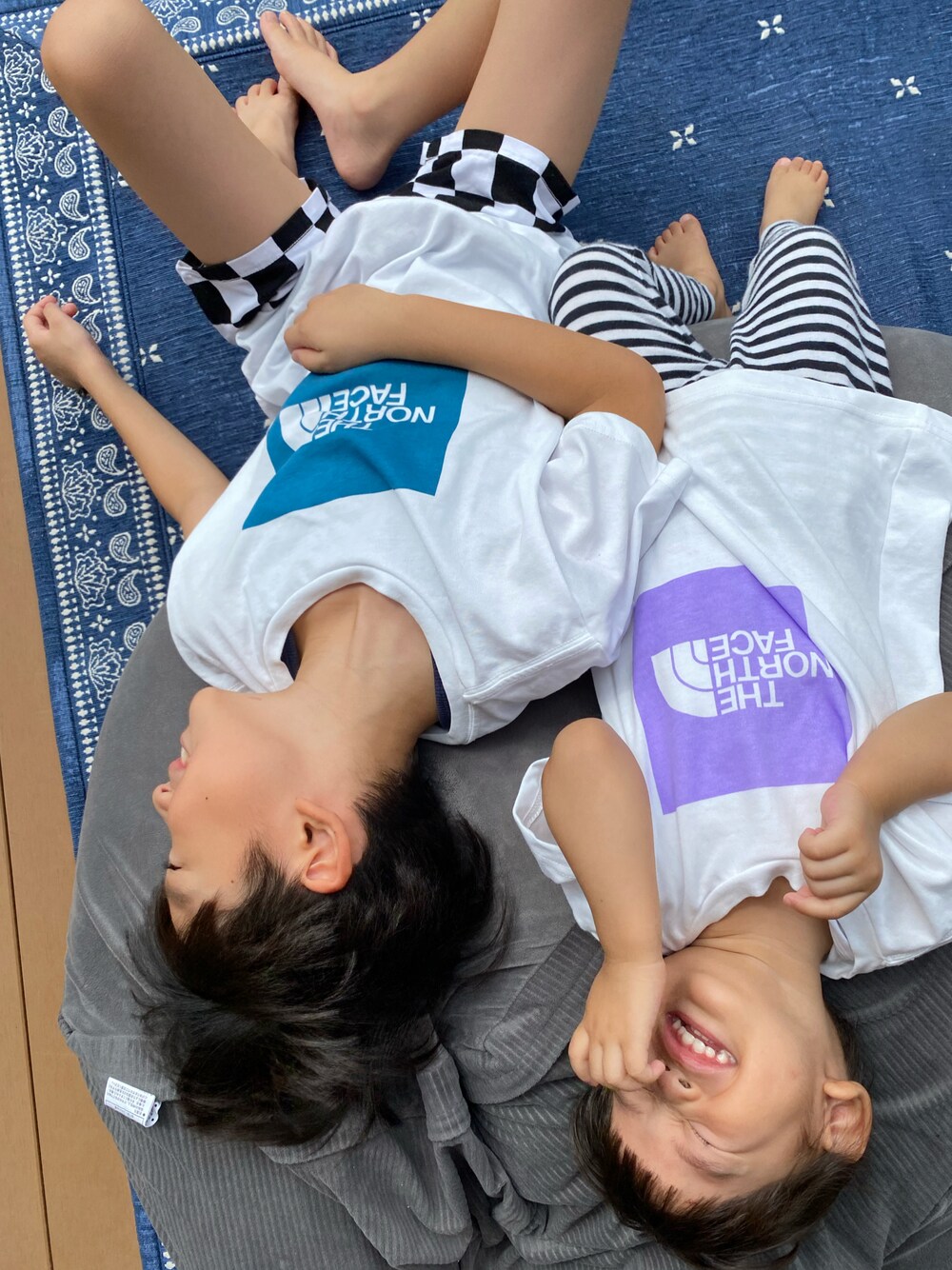 このTシャツいつみても可愛い♡♡ 後ろのロゴも可愛い♡♡ 2枚目見てね👀🤎 それにしても 毎回グタグタ写真ですいません…😅 ウッドデッキに天日干しした クッションとラグに堂々と寝そべる2人🥲 今それ 干してるんですけどぉ…っていうあたしの小言は 届かない😹