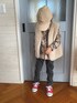 チェッカーずの季節ですね🍁🍂 今年も参加させてください( .ˬ.)" この間お迎えした ボアベストでチェックシャツ 合わせてみました♡♡ そして おニューアイテム🙂 GLOBAL WORKのボトムス😄 ストレッチ効いてて履きやすいらしい♡ 118cm小一 130買いました✌️