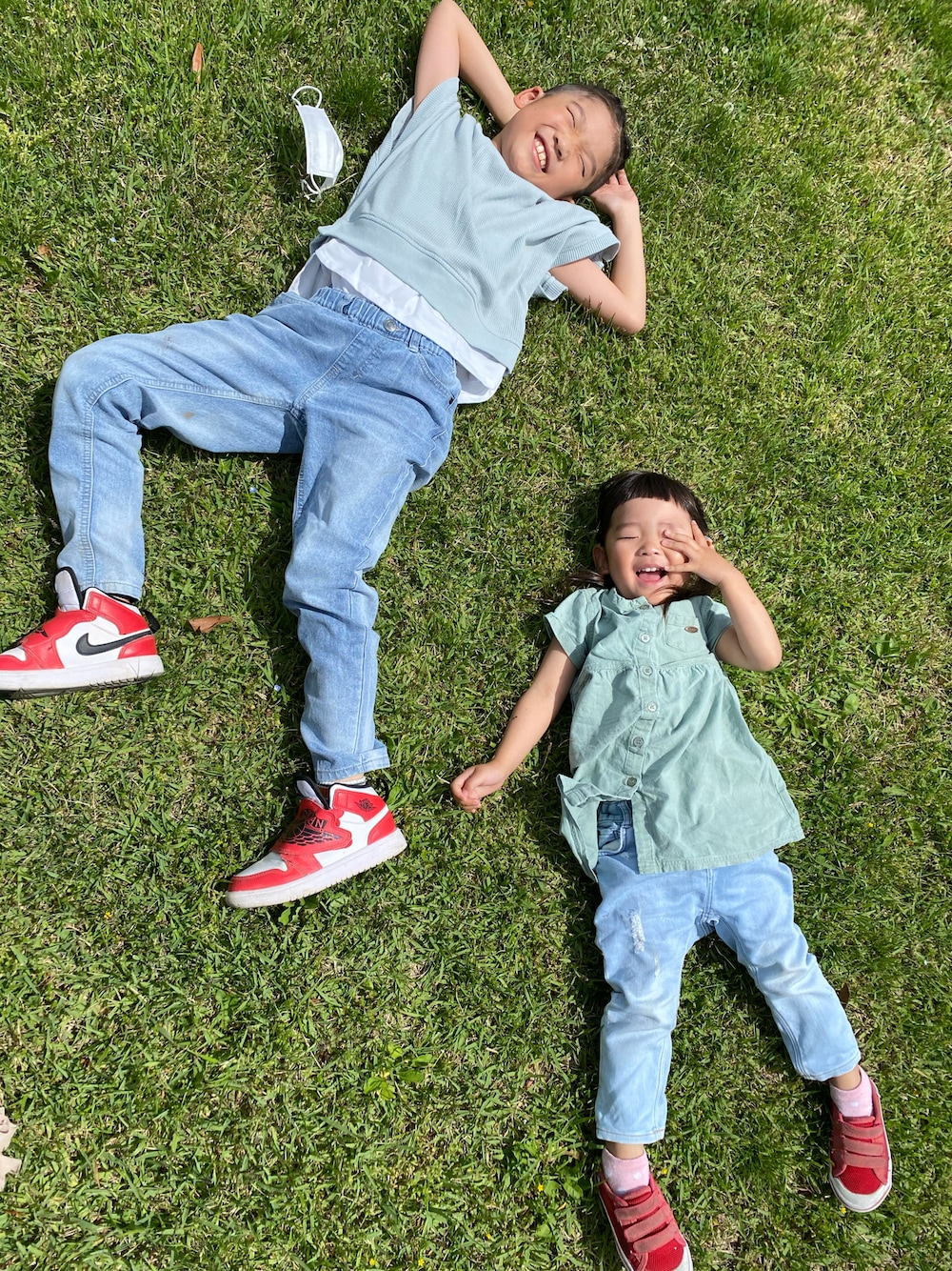 🤍🍀ミントグリーン×デニム🍀🤍 プチプラ万歳🙌 バースデイでおととし買ったやつ♡ え、まだ着れるなんて😭💙 助かるーー🌈 ミントグリーンかわいいなぁ🌿 この日はかき氷屋さんに行きたくて❄️ ドライブがてらお出かけしたけど🚗³₃ なんと…お休みだった…😇 ということで 隣の芝生で がびーーん!!の倒れ込み🫥笑 こどもたちよ、すまぬー🥶