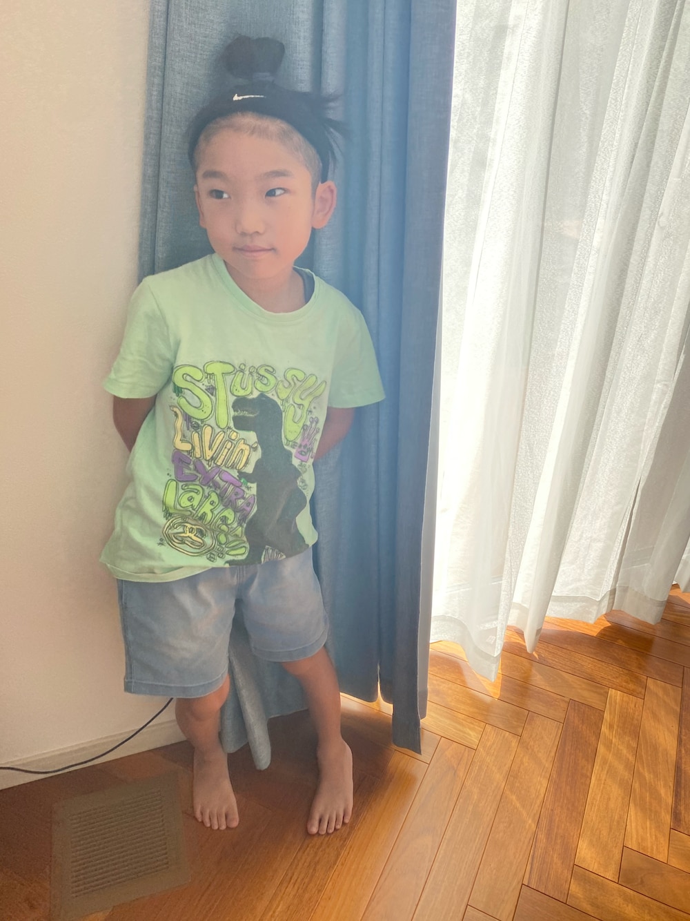 めちゃくちゃオフモードな息子😙 ミントグリーンなSTUSSYがツボ🏺