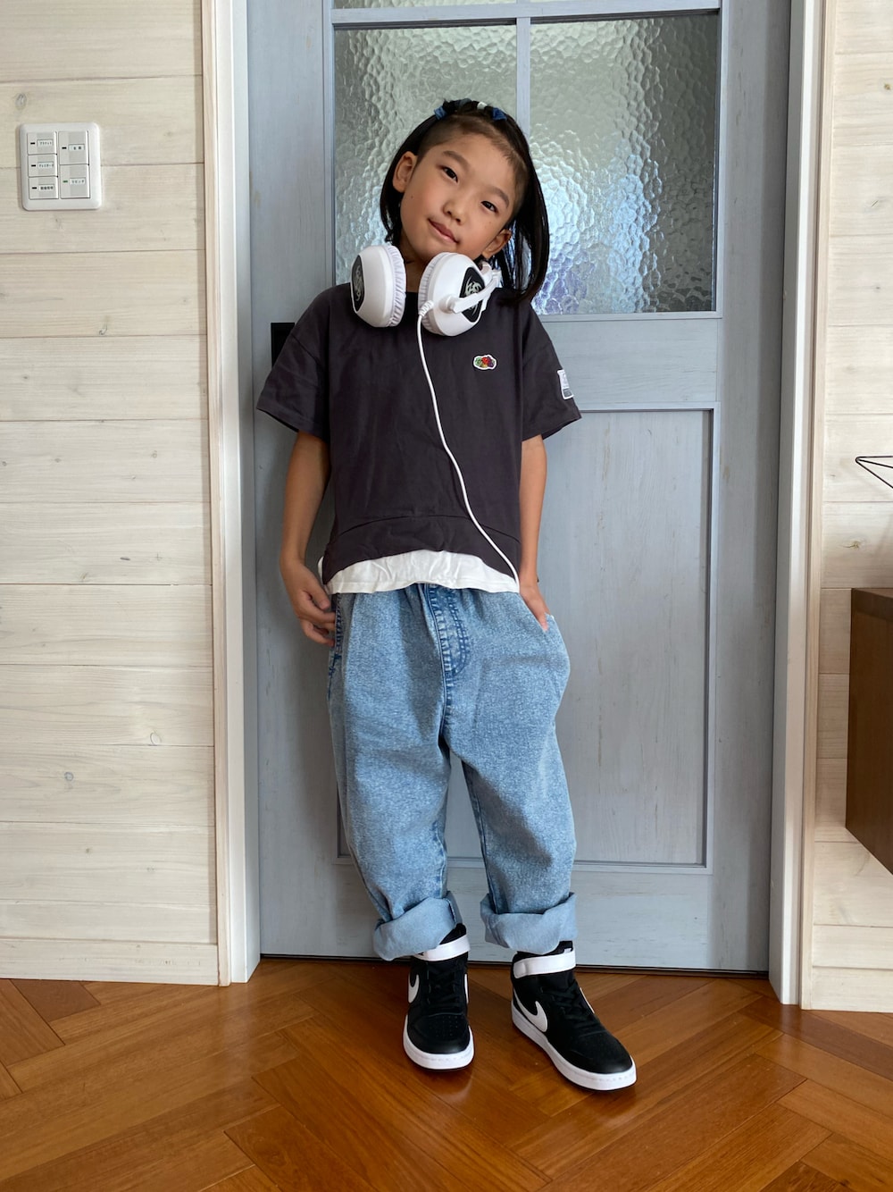 昨日UFOキャッチャーで ゲーム用のヘッドホンをゲットしてきた兄者✊💖 使い方不明🤣💦 とりあえず格好つけて☝️ 写真撮影📷笑 しまむらで一目惚れしたデニム😍💘 130サイズ💙𓈒 色味も形もタイプすぎるっ!!