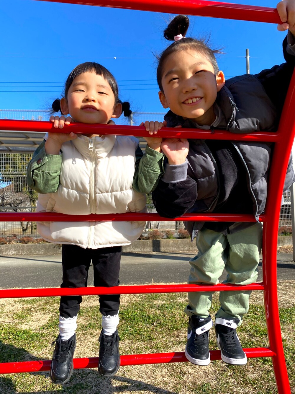 💚×🤍×🖤 兄妹リンクしてます(*^^*) 児童館のお庭で遊んだよ💚