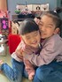 🎎🍡🌸 ピンク×デニム 5歳差兄妹リンク🔗 スライドしてみて♥️ 被布を着たお嬢がいるよ🍀 ついでに ひなあられを食べさせてあげてる😂