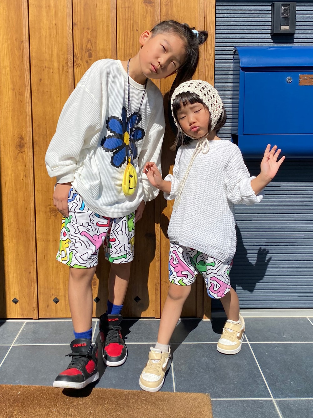 5歳差兄妹カラーリンク🔗 H&Mのパンツと 白ワッフルを合わせたよ🧇 今から百均でお小遣いを使って お買い物してくるね💕︎ 兄者の首にかけてるのが お財布だよ😊👛