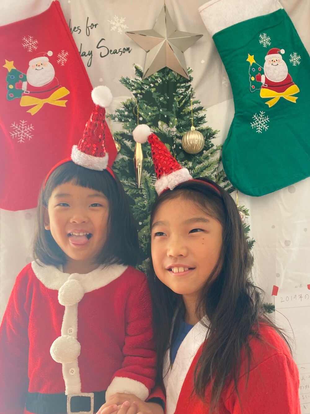 クリスマスコスプレ🎅最終🎅 2人でサンタさんになったよ❤️𓂃 𓈒 サンタさんの帽子カチューシャは この間 義理実家クリスマスパーティでプレゼントしてもらったやつ🎁♡ こどもたち ノリノリで装着してて可愛かった😍!! みなさま 素敵なクリスマスイヴをお過ごしください🎅🍀*゜
