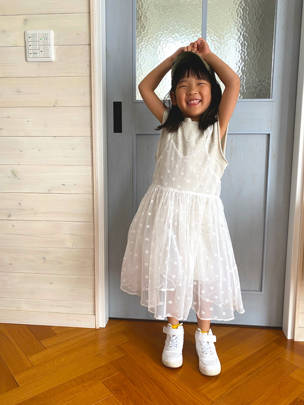 ヘルシー🤍 隣県のバースデーでGETした セットアップ😁 その上に お嬢がお気に入りなチュールスカートを 合わせてみたよ😆🤍 スニーカーとキャップ合わせが 可愛い😍✨️ 夏はこのコーデで お出掛けしたいな🤤