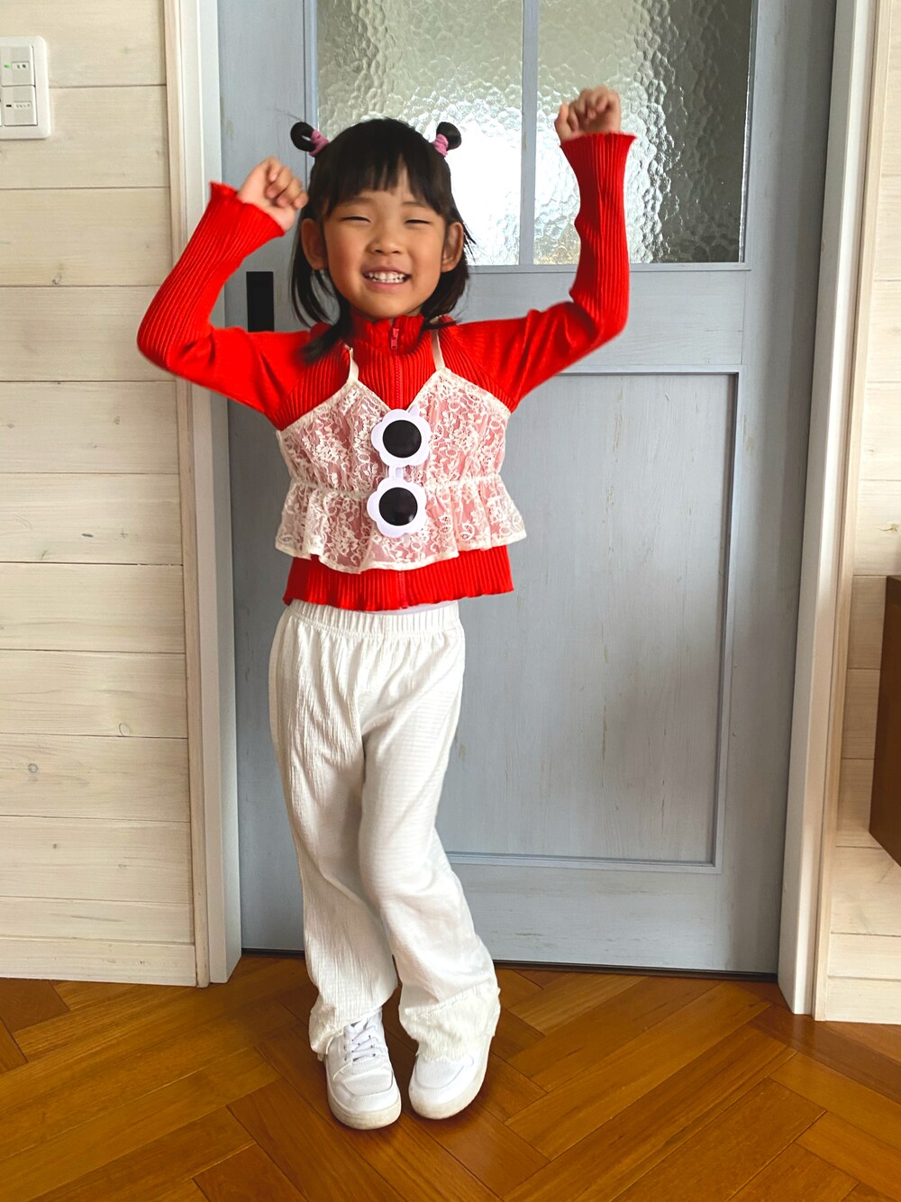 🍊×🤍 プチプラで元気カラー!!🧡 レースが可愛いビスチェも お嬢はお気に入り(*´◒`*)!! 女子だなぁーー😭👗♡