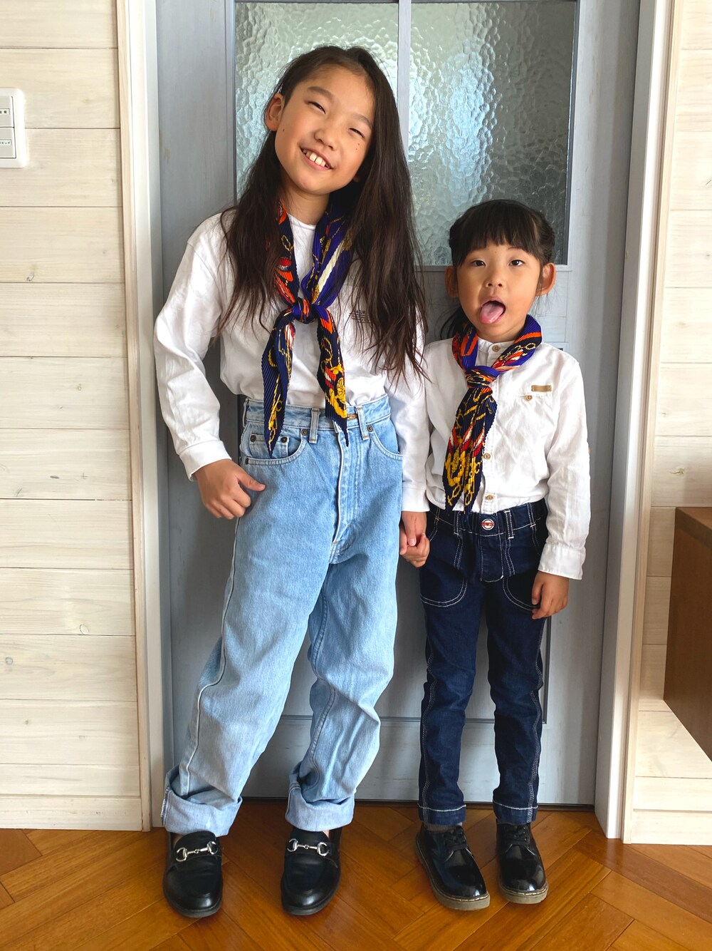 ばぁばが若かりし頃に着けてた スカーフ🤞🏻💙 2枚とも同じ柄なんだけど 貸してもらってて🤗♡♡ 可愛いから 2人に着けてみたの♡♡ やっぱ可愛い💛 結び方いろいろだし オシャレの幅が広がるーーっ💛 スカーフって取り入れるの難しいと思ってたけど けっこう簡単だった🤞🏻💙 兄者のデニム あたしが小6で履いてたやつ✋ なんでか実家から持ってきていた🏠笑 役に立つ😍