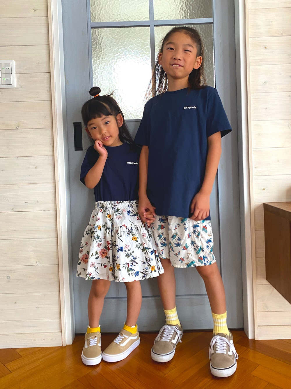 パタゴニアT×ボタニカル柄 お久しぶりな投稿✨ 元気でした!! 春の運動会とか💦 私の体調不良とか💦 なんだかバタバタしてましたけど😅 5歳差リンクで楽しんでます🍀*゜