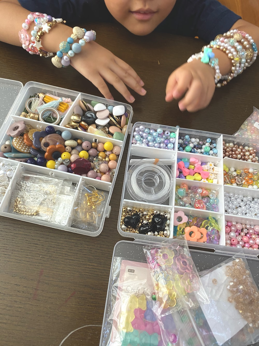 彼女の夏休みはビーズでブレスレット作り👧 すごい量を完成させています🥹♥️
