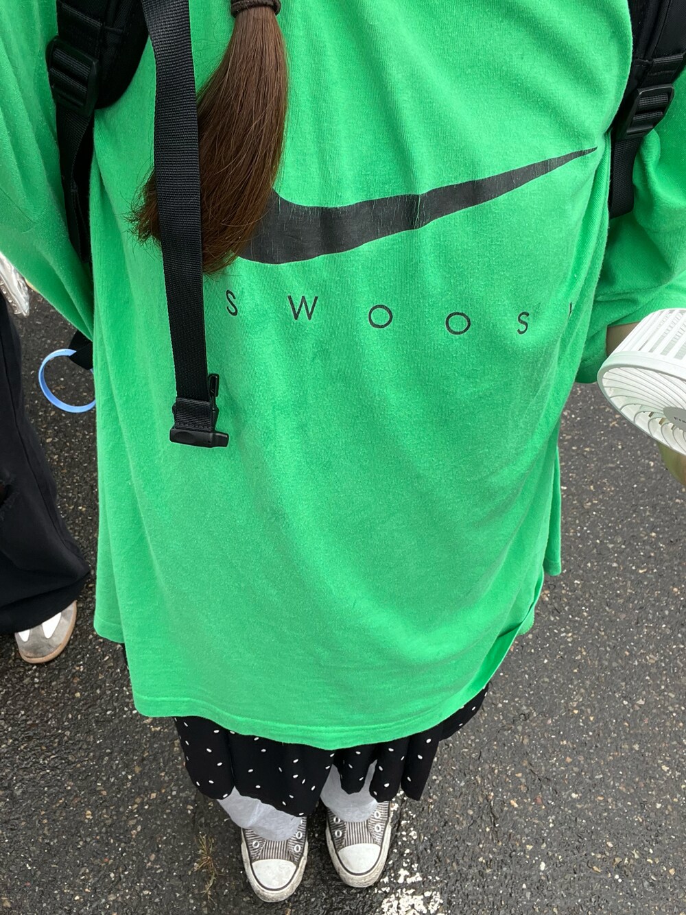 Tシャツ 古着屋 レイヤード しまむら水玉ワンピース ズボン ユニクロCスウェットパンツ