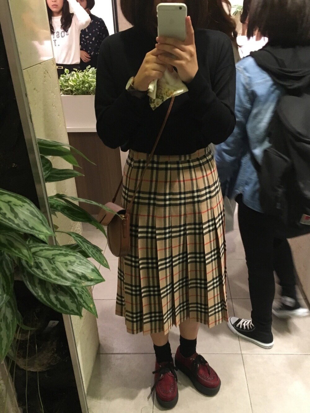 普段スカートを履かないタイプで これは初めて自分で買ったburberrysの スカート。90年代前製造。 ショルダーバックも同じく90年代前製造ね burberrys𓆸𓇠 女の子っぽくて恥ずかしいけど 凄くかわいい一着です𓃇𓃇 ハンカチも女子らしい花柄の ピンクハウスを❁