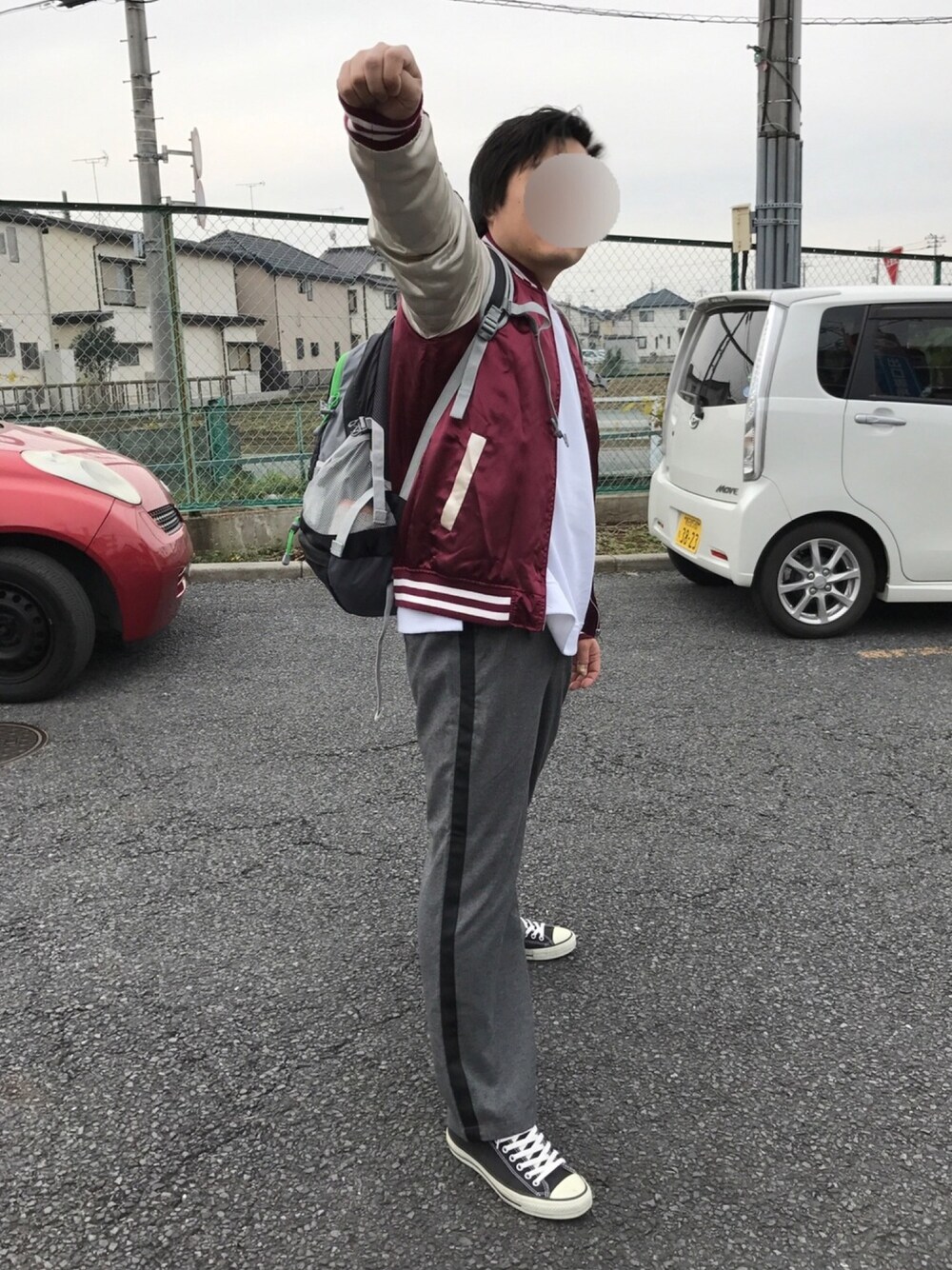 ボルドー✖️白✖️グレー みなさんいつもいいね&お気に入り、フォロー、コメントありがとうございます😆😆😆 段々仲良くしてくれる方が増えコメも増えてきました✨正直チョーーーうれしいです😆😆😆コメ下さるかた改めてありがとうございますm(._.)m 初コメの方も気軽に話しかけて下さい😁✌️️すぐ仲良くなっちゃいますよー(。-∀-) 今日も配色考えてます ε-(´∀`; ) 今日はスカジャンです(*☻-☻*) まずインナーに白Tシャツを着ます❗️ その上に白のスウェットを着ます‼️ さらにその上にボルドーのスカジャンを着ます‼️ 下はレイジブルーのラインスラックスです😝 そしてスニーカーはコンバースのオールスターローカットです😙😙 バッグはColombiaのバックパック👜です😚👏 これでコーデの完成です(´°̥̥̥̥̥̥̥̥ω°̥̥̥̥̥̥̥̥`) フォロワーさんも800人を超えてきました😙😙コメやフォローが多いと舞い上がります🤗✨ みなさんに忘れられないようにがんばってアップしますᕦ(ò_óˇ)ᕤ ヨロシクお願いしますo(≧▽≦)o