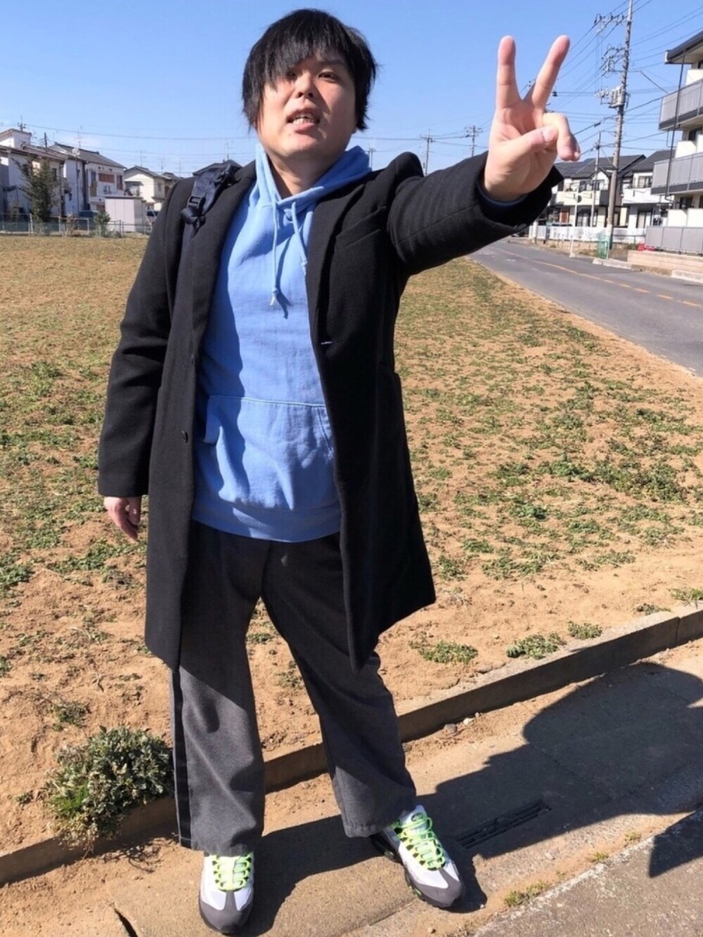 ブルー✖️ブラック✖️グレー✖️差しスニーカー いつも週一投稿なのにみなさん見てくださって感謝してます(´-ω-`) いいね、お気に入り、フォロー、コメントもありがとうございます✨ コーデです🎵(´ε` ) インナーはUNIQLOのヒートテック極暖Tシャツです😊👍 その上にライトオンのブルーのパーカーを着ます🙋♂️色に一目惚れ😁✌️ さらにその上にフリークスストアのブラックのチェスターコートを着ます😃見た目よりもめっちゃあったかい ╰(*´︶`*)╯♡ 下はグレーのサイドラインワイドスラックスです😵💦 サイズがぴったし🙆🏻♂️🙆🏻 バッグはネイビーのノースフェイスのバックパック👜です😝 靴はNIKE AIR MAX95イエローグラデ🙎🏻♂️🙎🏻♀ 履き心地抜群@(・●・)@ おまけでポールスミスの腕時計です❗️ これでコーデの完成です😀😀✨ フォロワーさんも800人くらいになりました🙆🏻♂️🙆🏻♂️みなさんの応援感謝✖️2です‼️ みなさんに忘れられないようにがんばってアップしますᕦ(ò_óˇ)ᕤ ヨロシクお願いします🤗✨