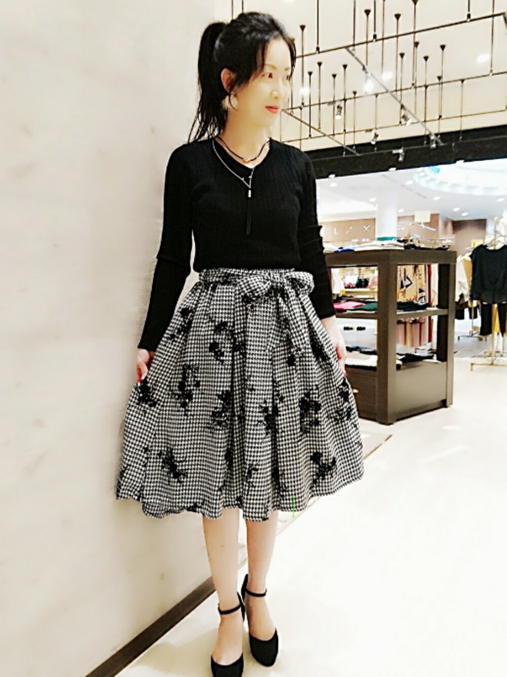 皆様こんばんわ😄 いつも見て下さりありがとうございます。 更新が遅れてしまってる私。 すいません😝頑張りまーす💪 最近、食欲の秋でめちゃ食べる飲む(笑) 食欲の秋は、関係ないか(笑) もうすぐ健康診断があるのにピンチな私。美味しいものが目の前にあると飛び付いてしまいますね(笑) そんな私は、今日は、ちょっとモノトーンで落ち着いたかんじとかわいさをミックスに着てみました~❤ なかなかこのスカート履くとかわいいです❤前が短め後ろが長めで身長が低い方でも履けちゃいますよ🎵 また窓口↓覗いて下さいませ。