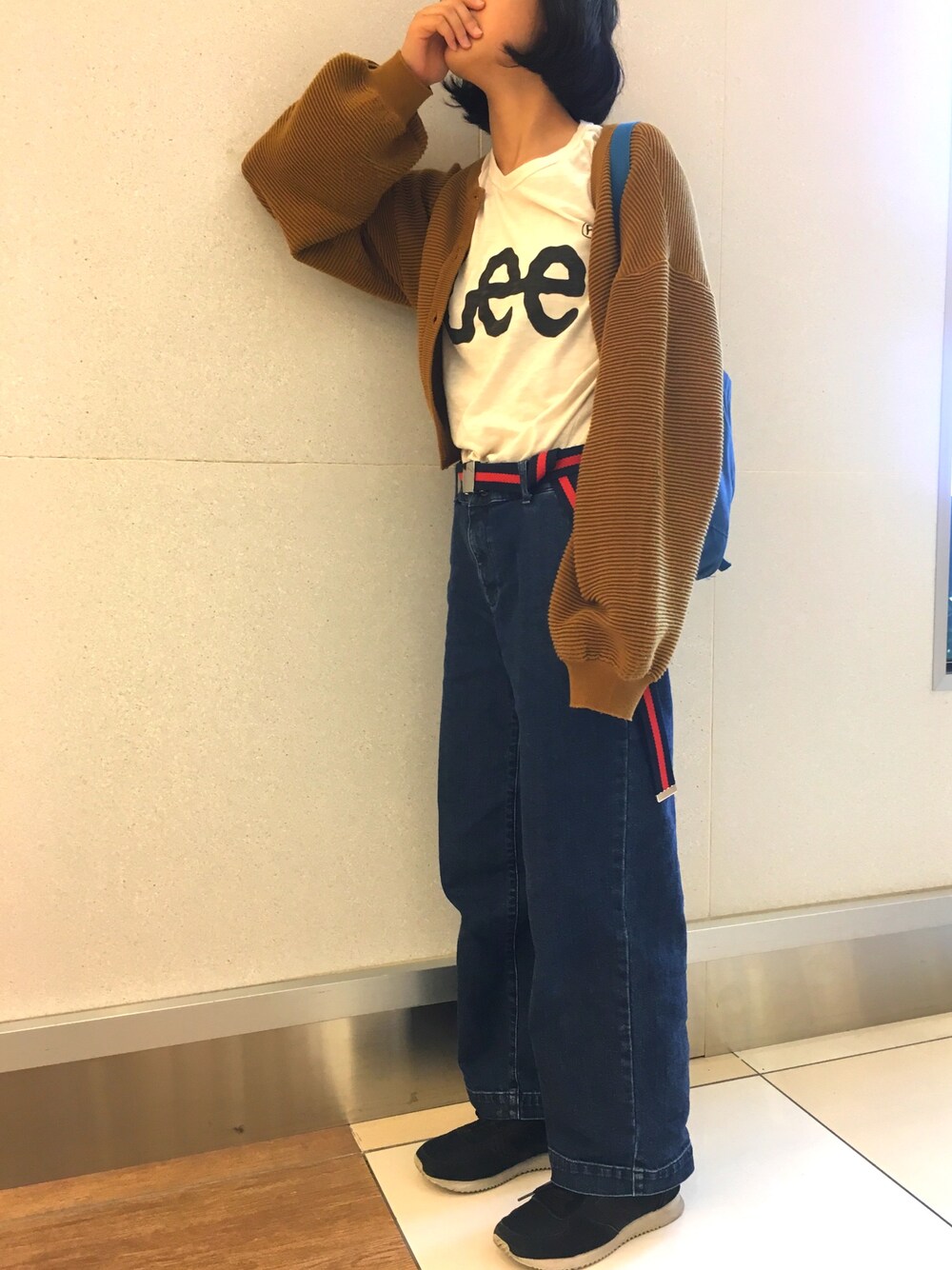 今日は肌寒いのでキャメル色のカーディガンとワイドデニムを合わせました。 新しい眼鏡を買ってもらって嬉しいです!