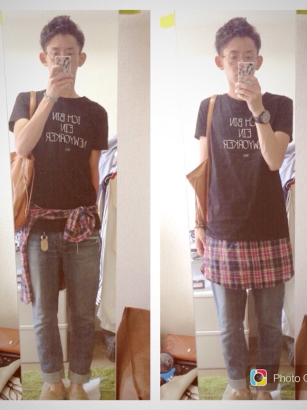 メガネ:MOSCOT Tシャツ:CIVISSUM シャツ:UNITED ARROWS パンツ:NIKE 靴:RECORD シャツを使って2コーデやってみました。 普通に腰に巻くタイプとエプロン風に巻いてみてもありな気がする(^^) 夏はどれだけ小物たちを使って工夫するかが楽しい🎶