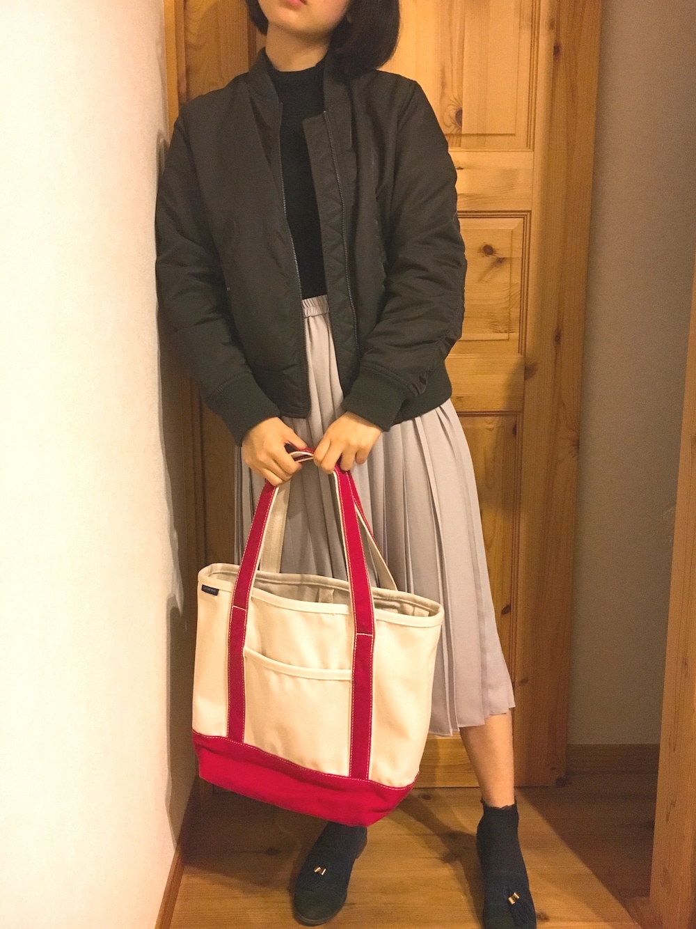 このトートバックはポケットがいっぱいあって 生地もしっかりしててとっても使いやすいです😊 今日は上下UNIQLOのプチプラコーデです〜