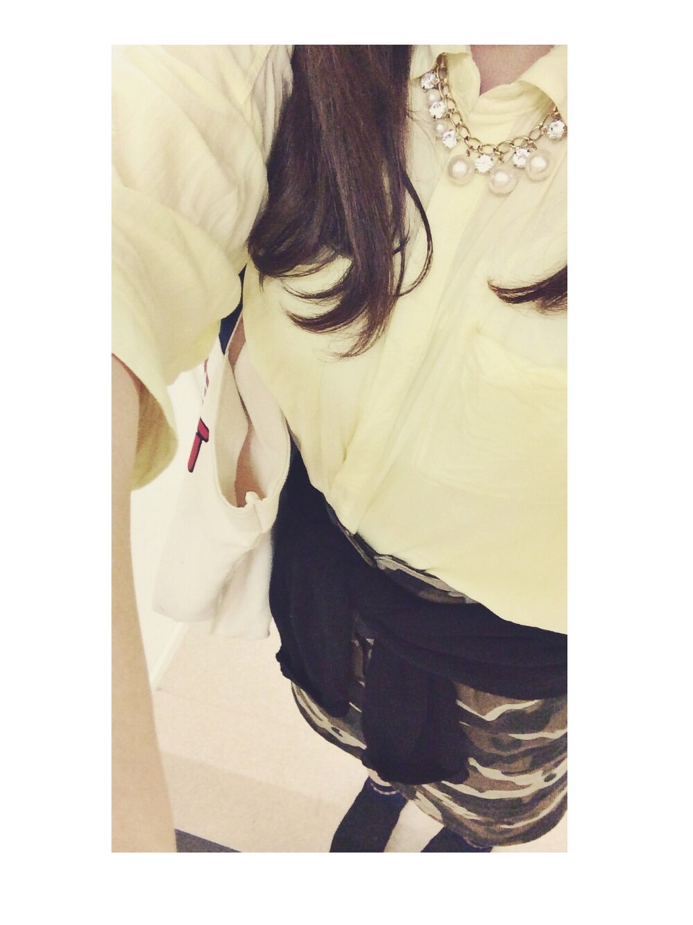 今日は2度寝?3度寝?(笑)しちゃって遅刻( ꒪⌓꒪) 慌てて着替えたそんなコーデ。(笑) Shirt GU Skirt しまむら Cardigan BENETTON Soks しまむら Slip-on Honeys Neclace earth music & ecology Bag UNIQLO プチプラ〜💗(笑)