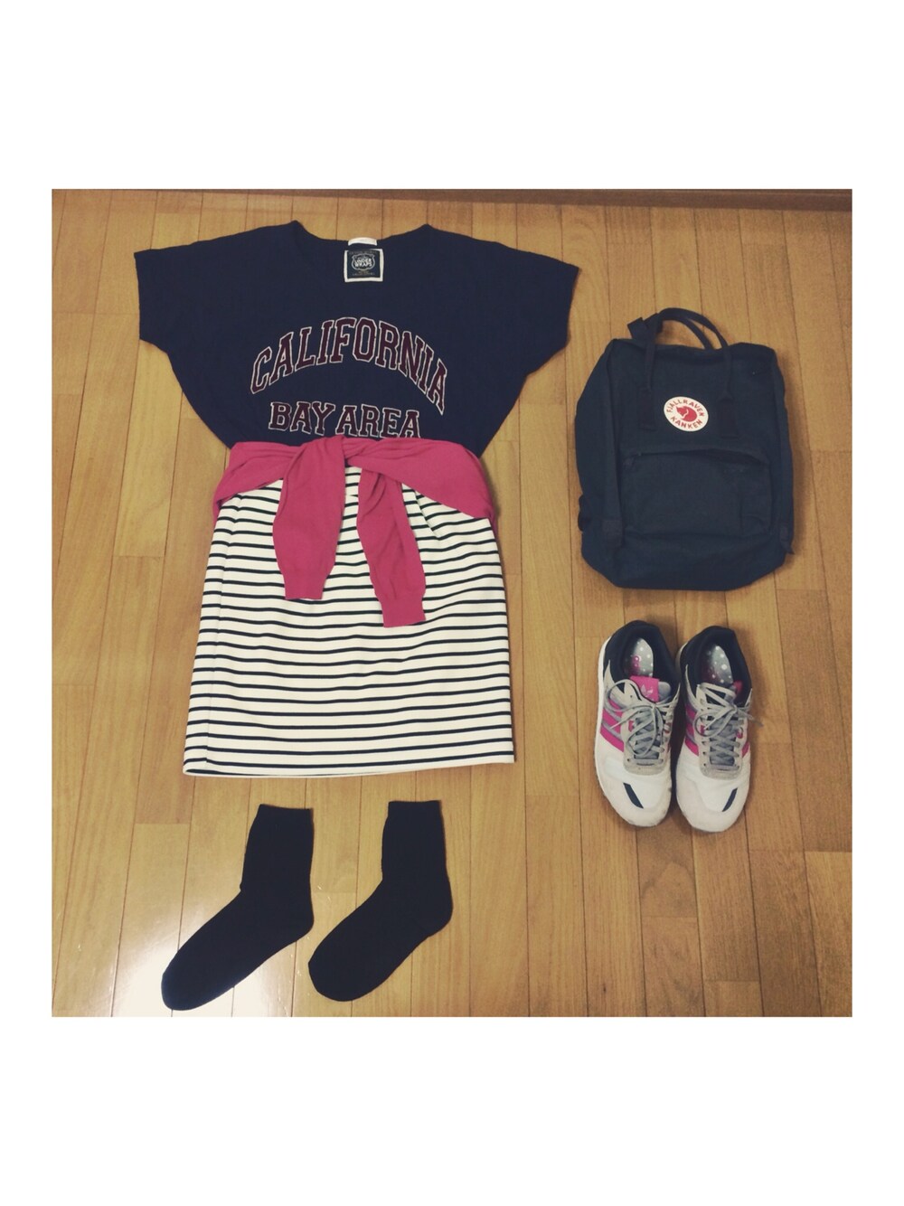 7/9のコーデ! Tops しまむら Skirt しまむら Soks しまむら だいぶ前に買ったTシャツ〜 やっぱネイビー好きなんだな(笑) コーデネイビーだらけ(笑) これロゴの部分かわいいんだ〜*\(^o^)/* しまむらばっかのコーデだあ!(笑)