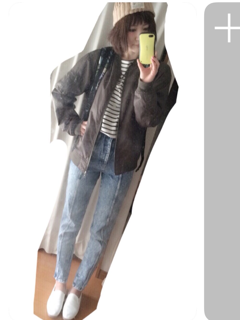 昨日買った古着のデニム♩ と、MA-1(これは去年UNIQLOで900円の 時に買ったやつ♩(⍢)