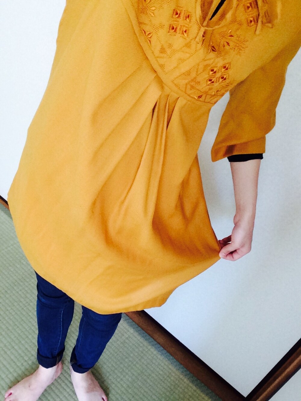 マスタード色のワンピース 激安で前に購入したもの、