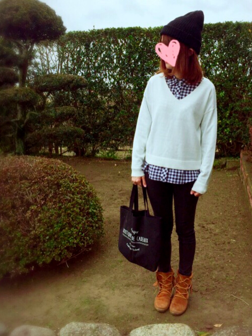 昨日の、ギンガムチェックの着まわし〜 小雨が降ってるー💧💧☔️ 4月なのに、寒いわ❄️❄️❄️
