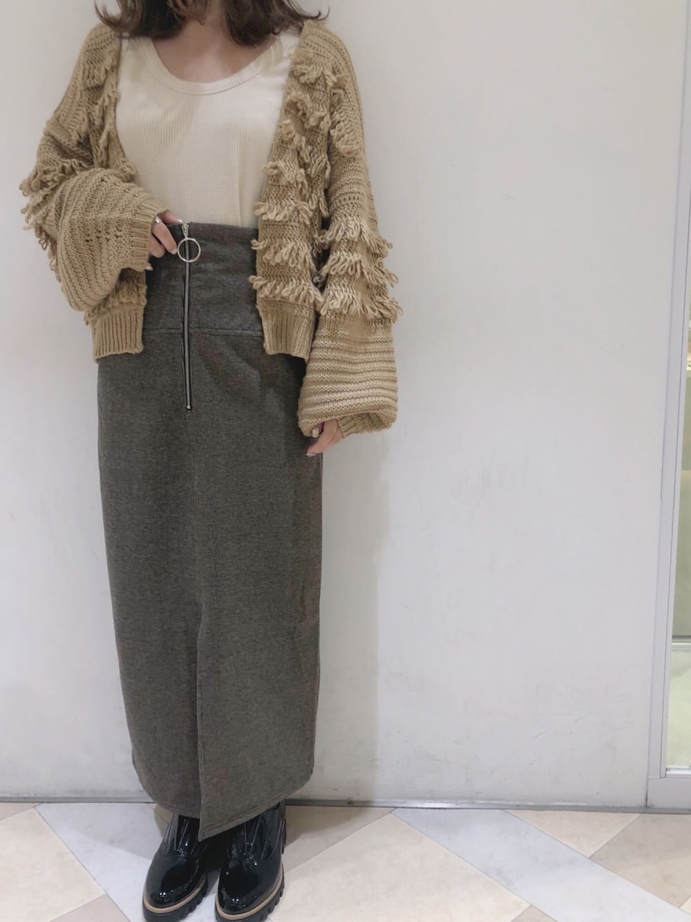 ループ編みカーデでお洒落に 秋のシンプルコーデ