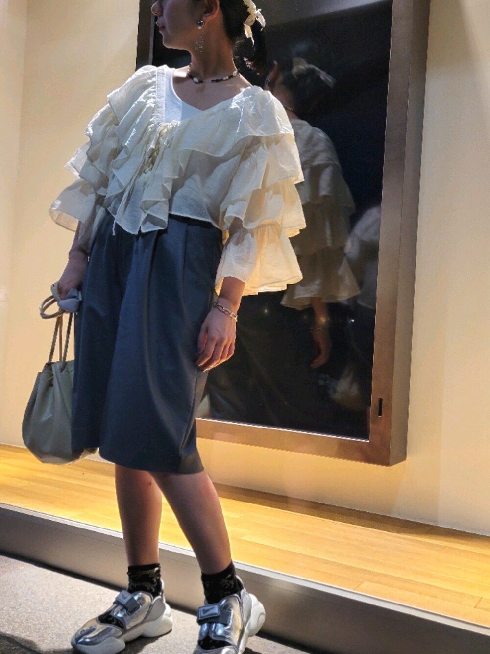 hashiのシャツ/ブラウス「袖フリル編み上げボレロ」を使ったコーディネート