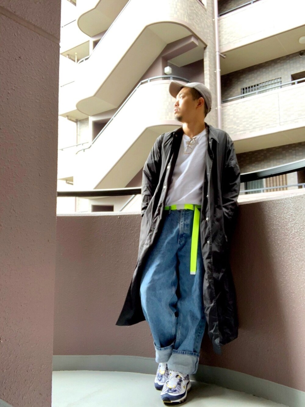Cap:H&M Coat:JOHN LAWRENCE SULLIVAN Cut-sewn:H&M Pants:Levi’s Shoes:NIKE Belt:Coen Glasses:金子眼鏡
