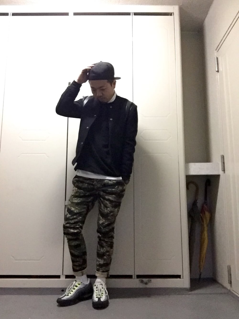Blouson:H&M Sweat:H&M Cut-sewn:JOHN LAWRENCE SULLIVAN Pants:BEAUTY &YOUTH UNITED ARROWS Shoes:NIKE Cap:YOHJI YAMAMOTO × NEW ERA