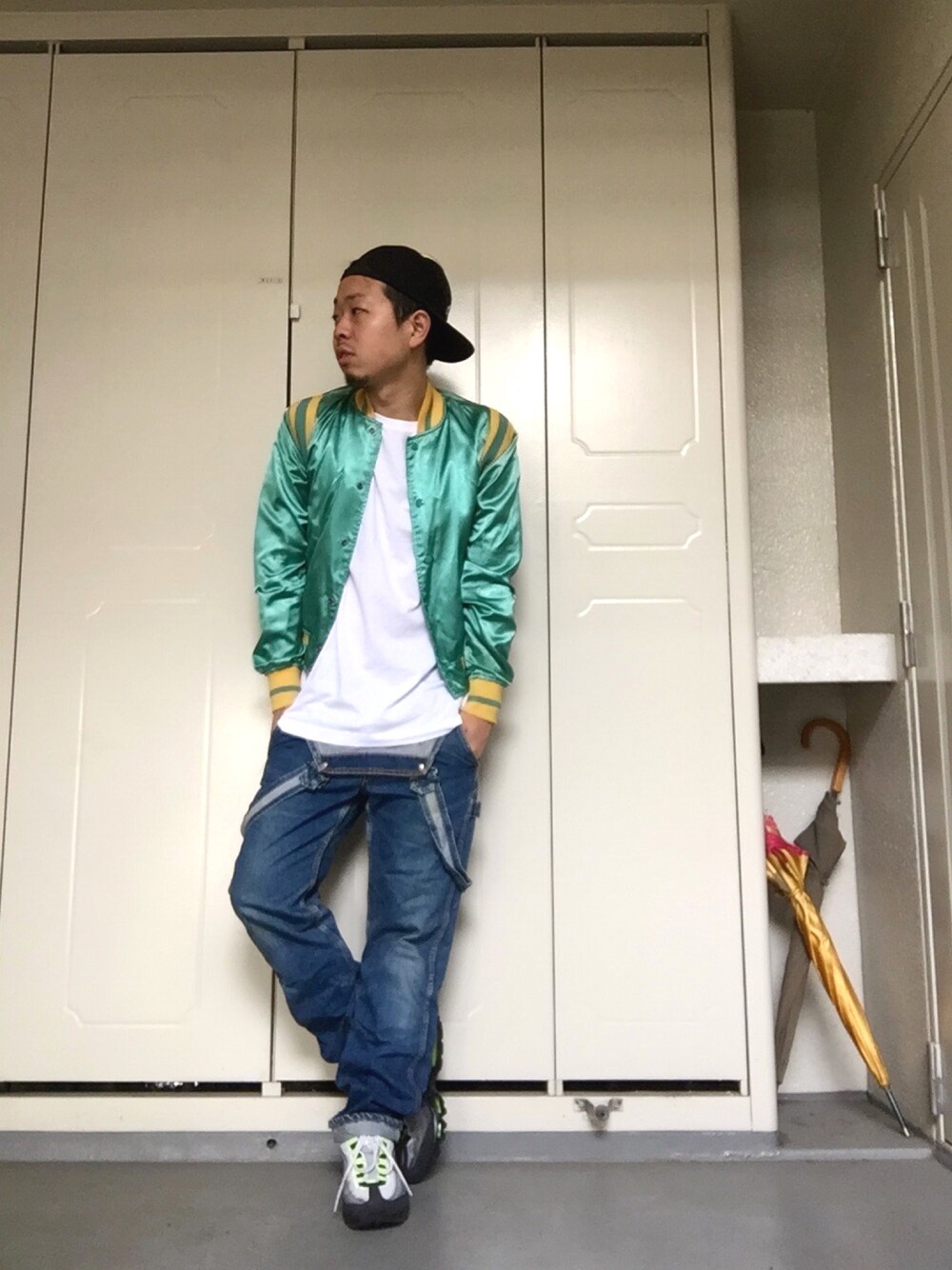 Blouson:used(Coca Cola) Cut-sewn:H&M Pants:used(Bobson) Shoes:NIKE Cap:40oz NYC