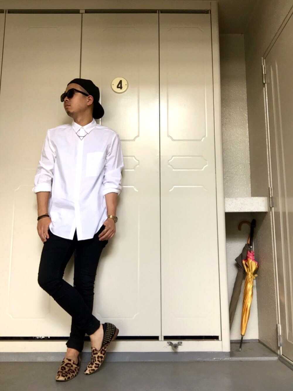 Shirt:ALEXANDER WANG Pants:H&M Shoes:GIACOMORELLI Cap:Yohji Yamamoto × NEW ERA Sun-glasses:TOM FORD